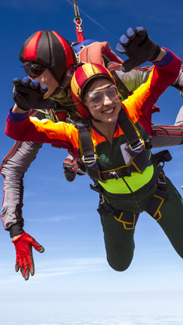 Le grand saut en Tandem chute libre est un saut en parachute bi-place avec un moniteur diplômé d’Etat.